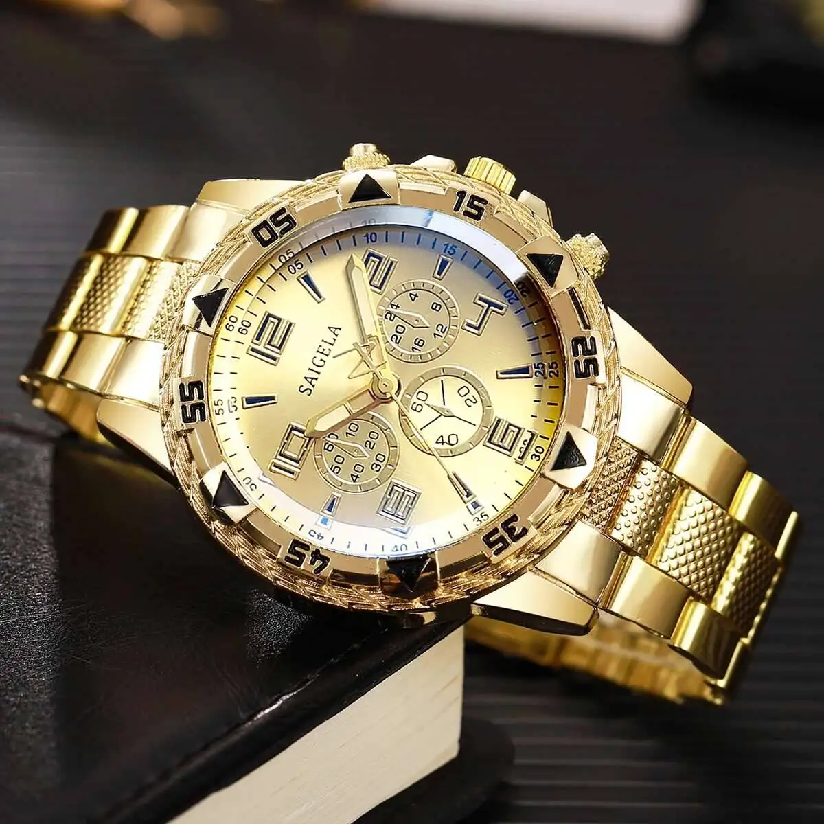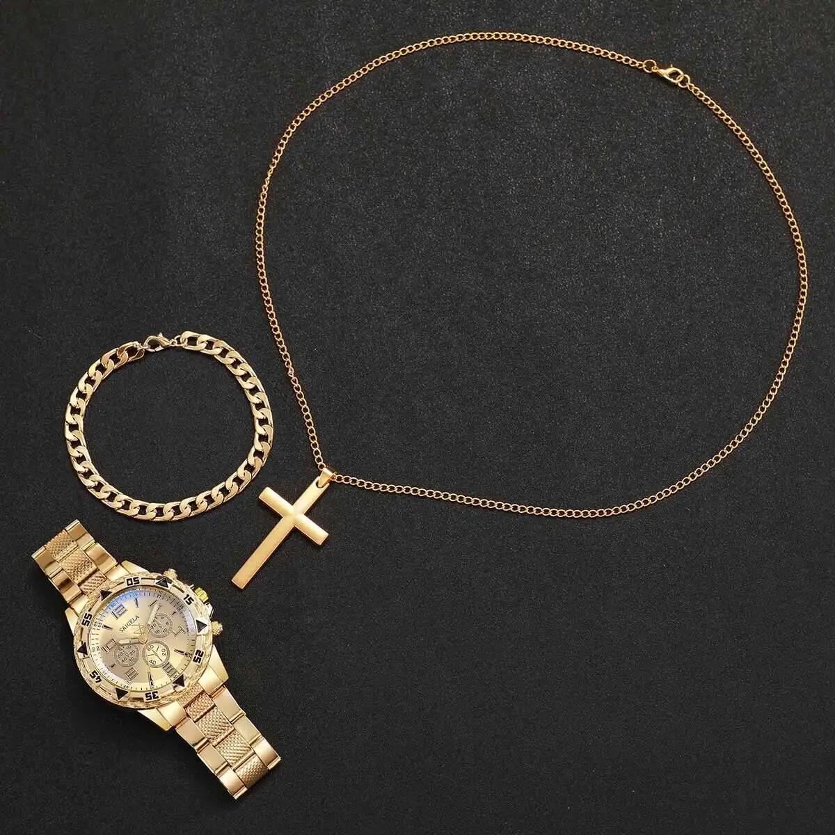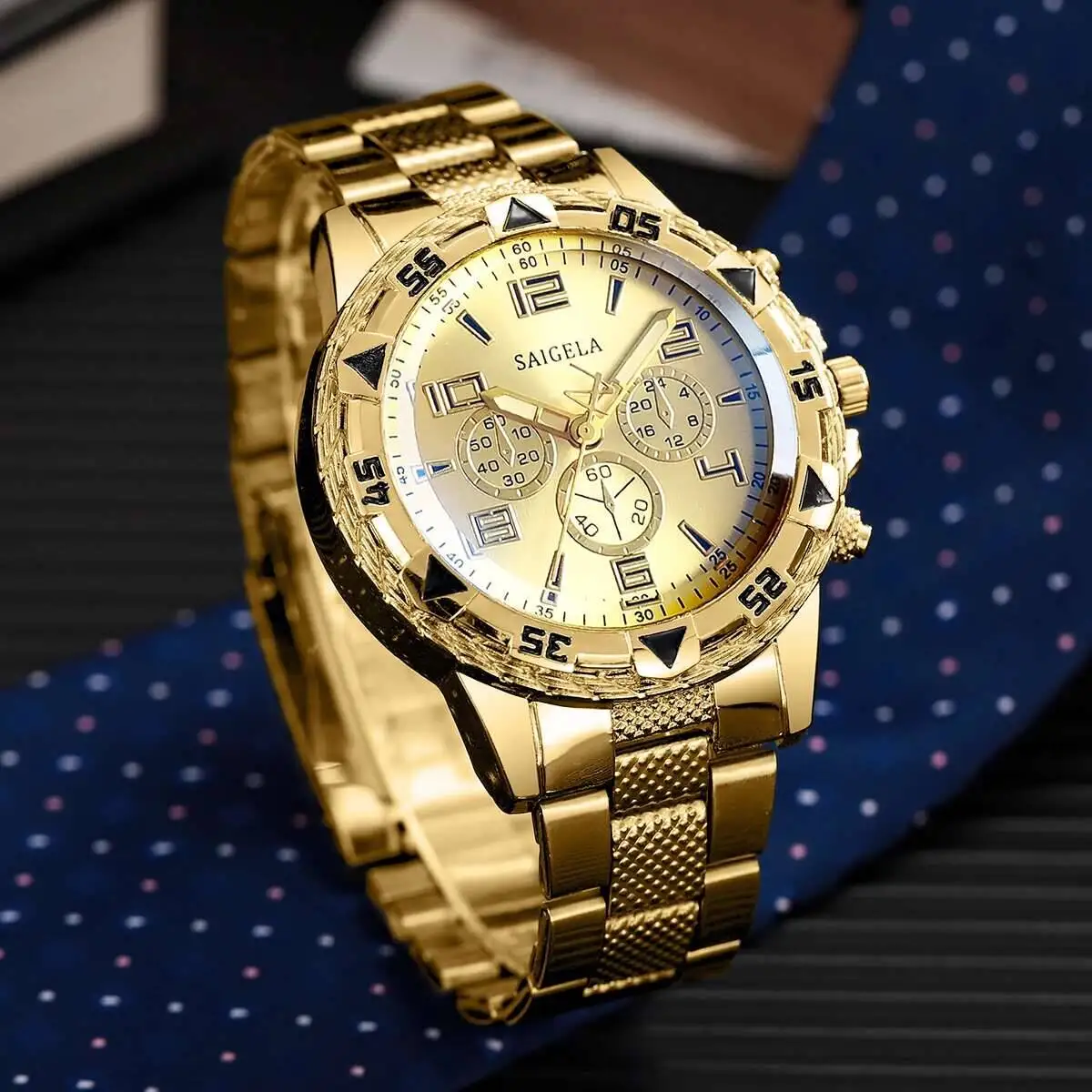 3 pçs moda masculina relógios de negócios luxo banda aço masculino analógic