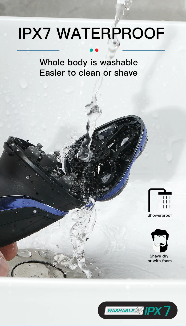 ? Projetado com classificação à prova d'água IPX7, você pode usá-lo facilmente no chuveiro ou com creme de barbear para uma experiência de barbear conveniente.
