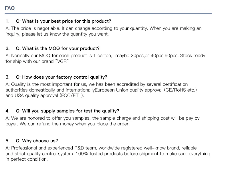 A qualidade é o mais importante para nós, obtivemos certificações de qualidade (CE/GS/RoHS/FCC etc.)de vários organismos de certificação dentro e fora da China.